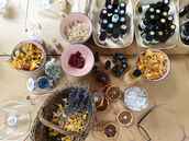Wide variety of dried flowers, herbs, petals, and blooms